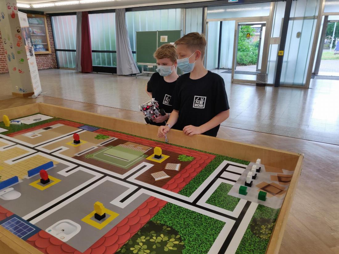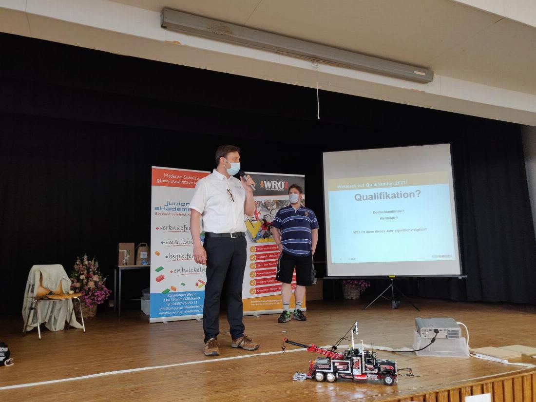 Am vergangenen Samstag, den 12. Juni 2021, eröffnete ein Regular Category Präsenzwettbewerb in Wahlstedt und ein hybrider Open Category Wettbewerb die Saison 2021. In der Regular Category steht das Bauen und Programmieren von LEGO Robotern und das Lösen von Aufgaben auf einem Parcours im Mittelpunkt. Unter Beachtung der Hygieneauflagen gelang es Bernd Müller, dem Leiter der Junior Akademie, den ersten Regular Category Wettbewerb der Saison 2021 in Wahlstedt in Präsenzformat durchzuführen. Vier Teams der jüngsten Altersklasse Elementary (8-12 Jahre) lösten mit ihrem Roboter Aufgaben auf einem Parcours rund um das Thema „POWERBOTS – The future of Energy“ in vier Wettbewerbsläufen. Zwischen den Bauphasen und Wettbewerbsläufen wurden zusätzlich ‚Frische Luft‘-Pausen in den Zeitplan aufgenommen. Lukas Plümper, welcher als Vertreter unseres Vereins vor Ort dabei war, dankte Bernd Müller für die Organisation der Veranstaltung im Einklang mit den Hygienevorschriften und der dafür nötigen Abstimmung mit den Behörden: „Der Verein freut sich, dass nach dem letzten Wettbewerb vor knapp 2 Jahren nun endlich wieder ein WRO Wettbewerb in Deutschland stattfinden kann“, so Lukas.
