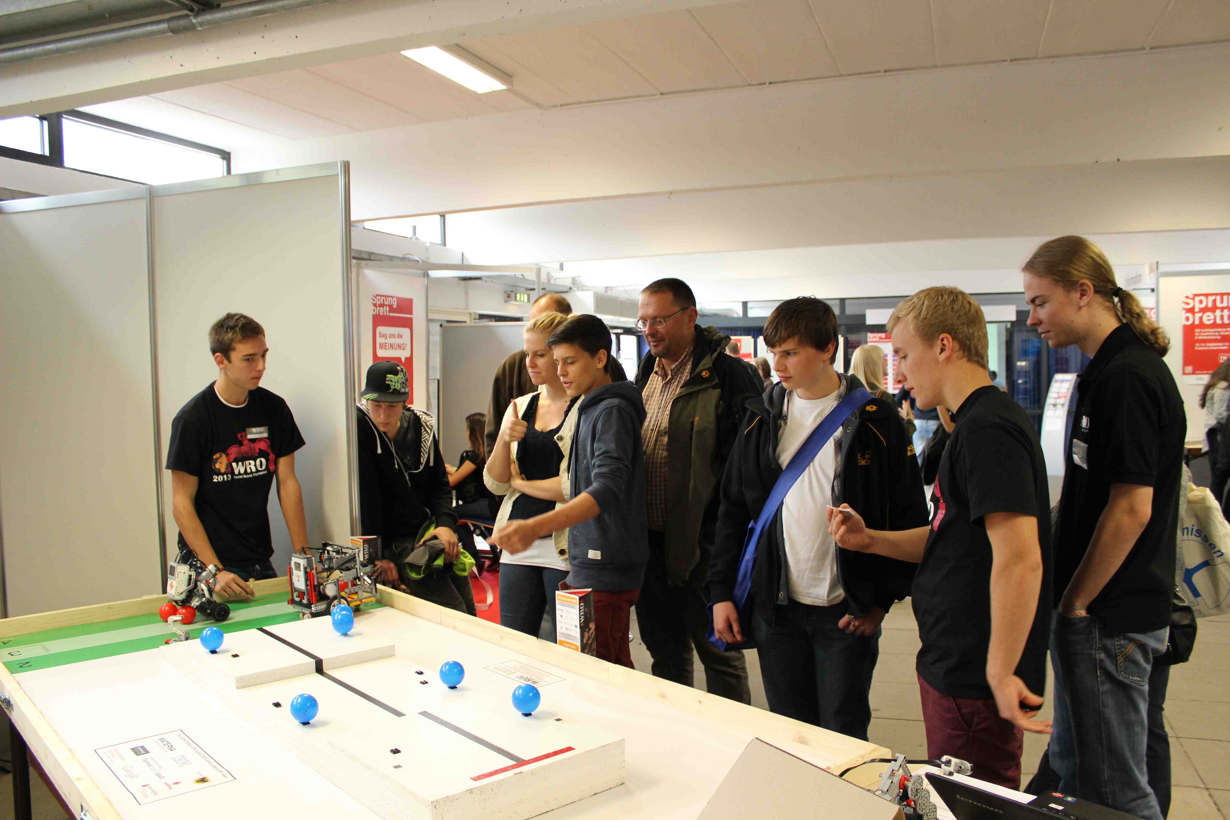 Am 13. und 14.September 2013 haben wir die WRO auf der Sprungbrett-Messe (www.sprungbrett-lu.de) in Ludgwigshafen am Rhein ausgestellt. Die Sprungbrett-Messe ist eine regionale Messe für Ausbildung, Studium und Weiterbildung mit mehr als 13.000 Besuchern jährlich. Mit dabei war das WRO-Team LEGOMANIA mit seinem Roboter der WRO Regular Category, Altersklasse Senior.