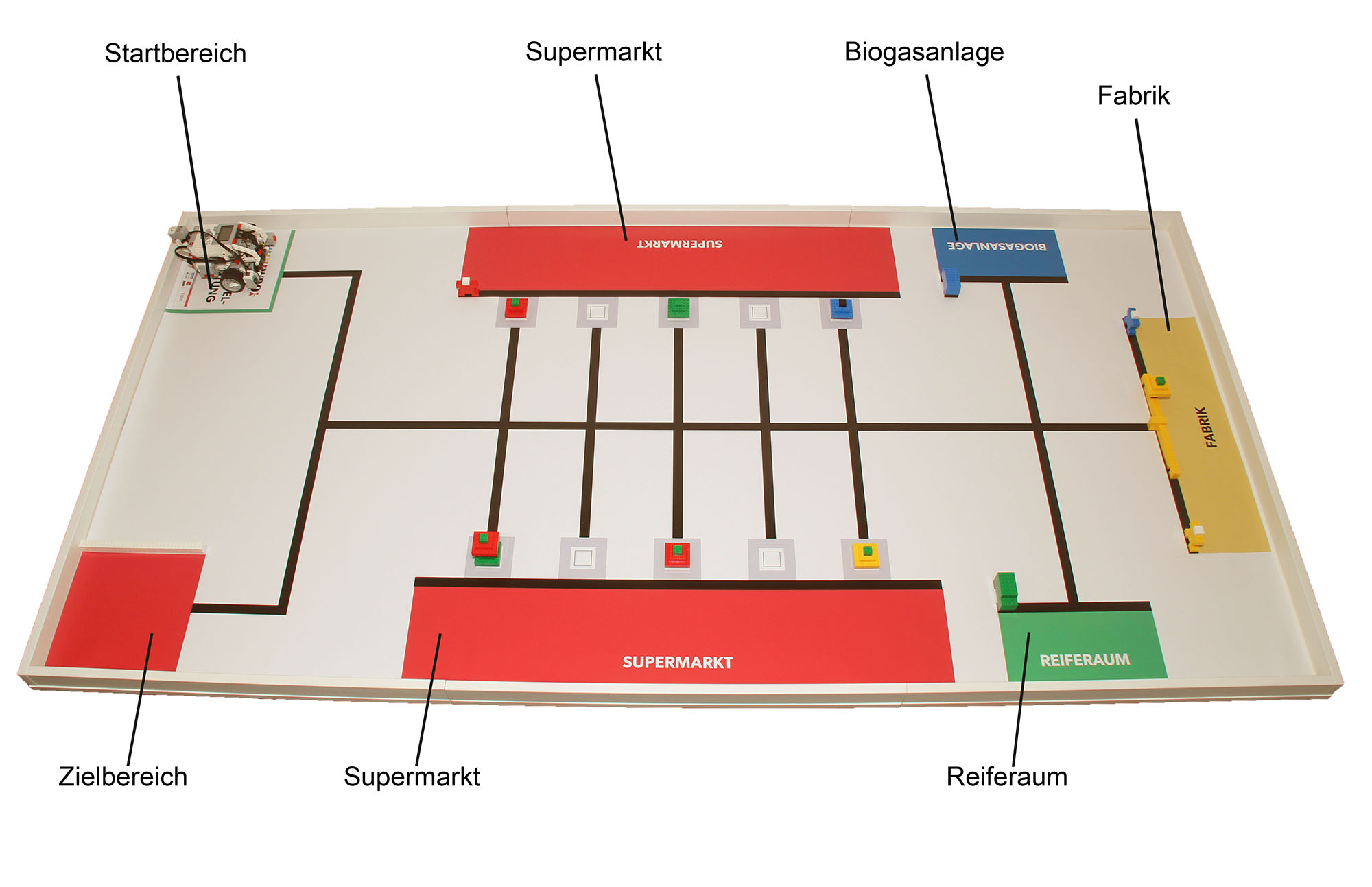 In der Altersklasse Elementary baut ihr einen Roboter, der hilft, Lebensmittelabfälle zu reduzieren. Euer Roboter sortiert Lebensmittel nach ihrem Aussehen und Alter und bringt sie an einen Ort, an dem sie weiter genutzt werden können. Unreife Lebensmittel sollen im Reiferaum zu Ende reifen und schon fertige Lebensmittel sollen in den Supermarkt gebracht werden.