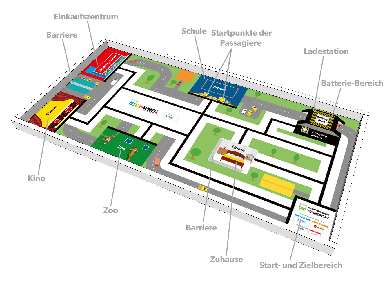 In der Altersklasse Elementary baut ihr einen Roboter, der Personen selbstständig zu unterschiedlichen Orten in der Stadt transportiert.