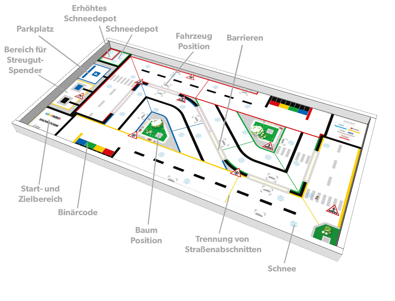 In der Altersklasse Junior baut ihr einen Roboter, der die normalen Bedingungen in der Stadt wiederherstellen soll. Der Roboter muss Schnee schieben, liegengebliebene Autos bergen und Streugut auf der Straße verteilen. Passt auf, dass ihr die Bäume dabei nicht beschädigt.